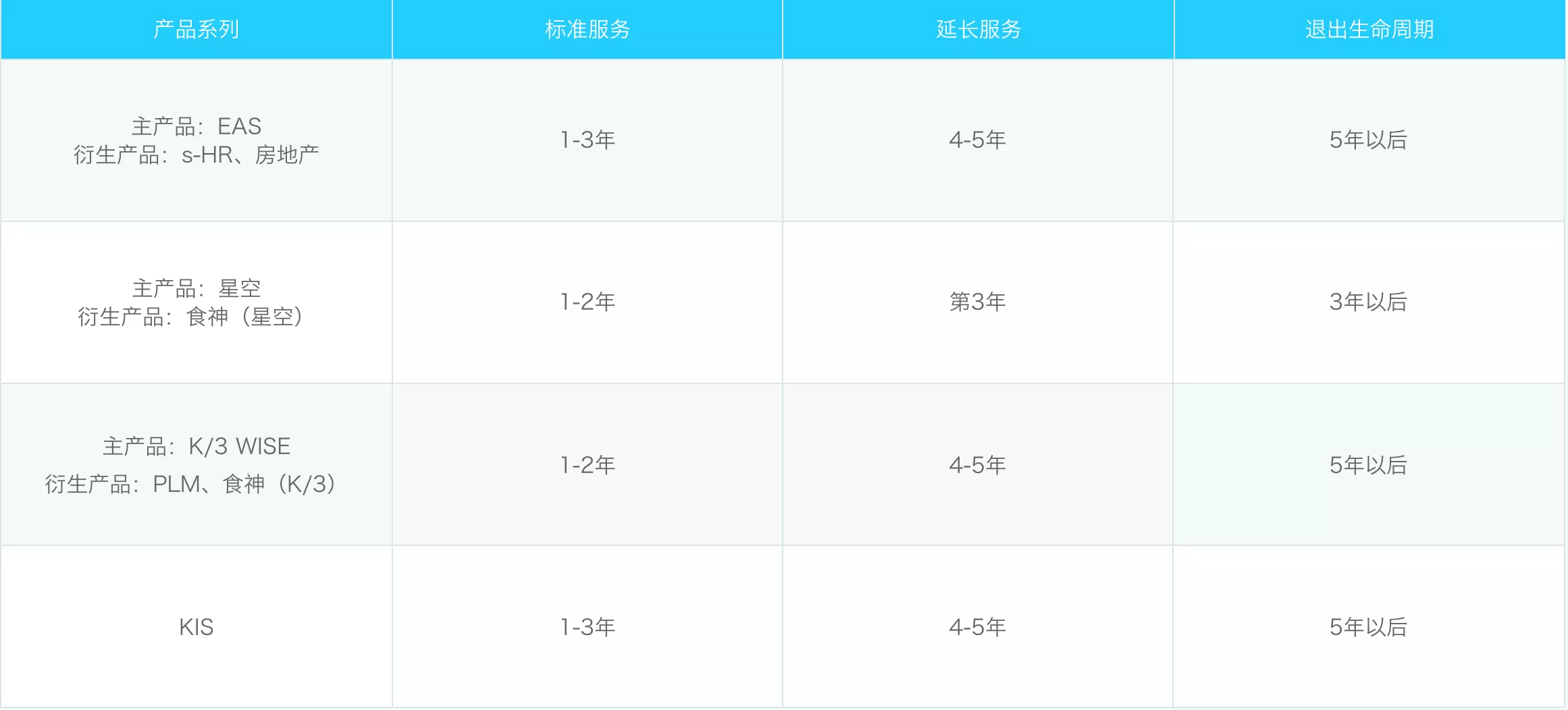 A.退出生命周期后,金蝶客戶服務(wù)中心及研發(fā)團隊不再提供包括熱線服務(wù)、版本升級、版本更新、需求反饋等相關(guān)服務(wù)。